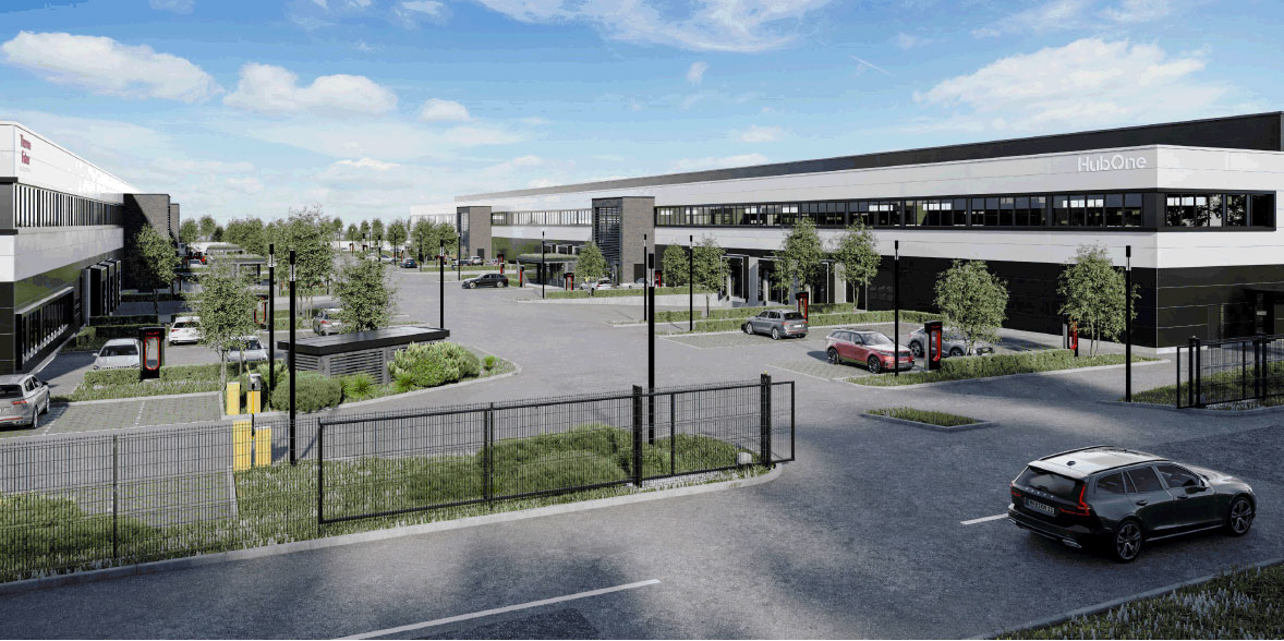 Auf einer Grundstücksfläche von rund 35.400 m² entsteht bis Mitte 2025 das HubOne – eine hochwertige Logistikimmobilie in Langenselbold. In zwei Bauabschnitten werden rund 21.900 m² modernste Hallen-, Büro-, Service- sowie Ausstellungs- und Produktionsflächen geschaffen. Das Gebäude bietet höchstmögliche Flexibilität in der Nutzung. Beide Bauabschnitte sind vollständig und langfristig vermietet.